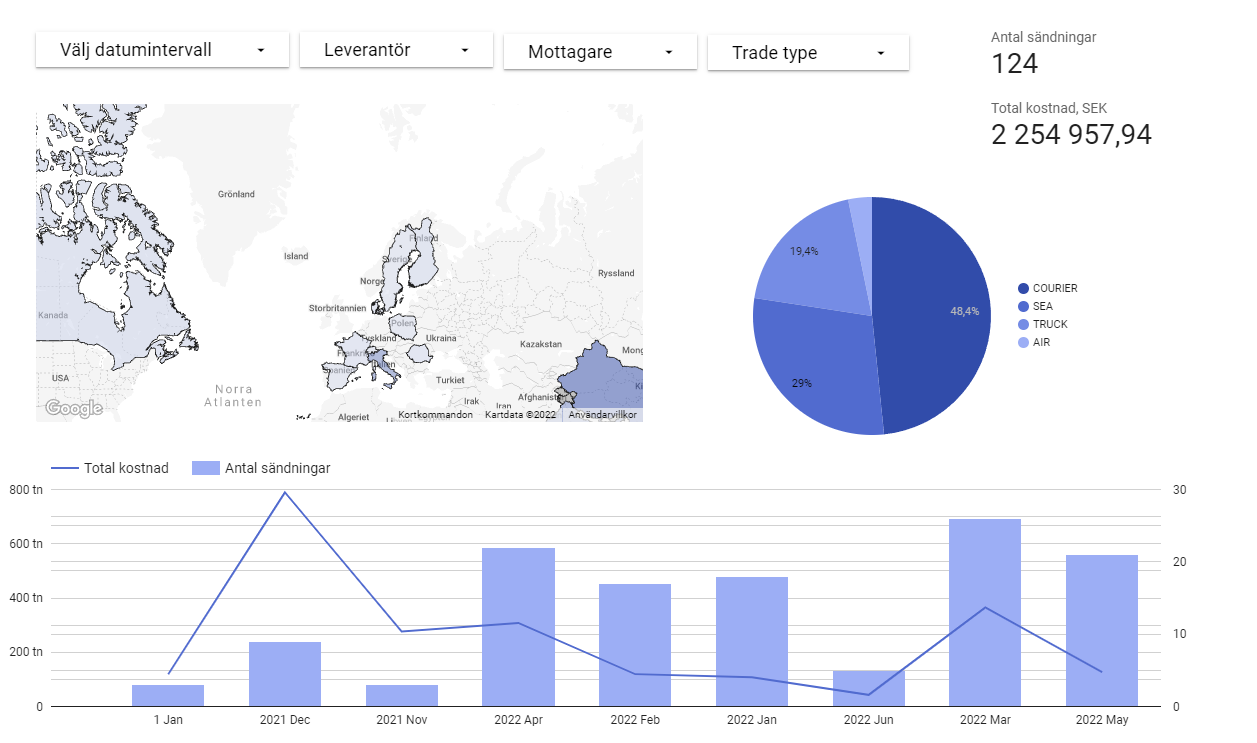Som ett led i vår strävan att göra det enkelt för dig att hantera, ha insyn i och utvärdera dina transporter har vi nu lanserat en ny funktion i TKL Kundportal – Reports. I Reports kan du se relevant övergripande statistik för alla dina transporter, exempelvis gällande antal sändningar över tid, transportsätt och kostnader.